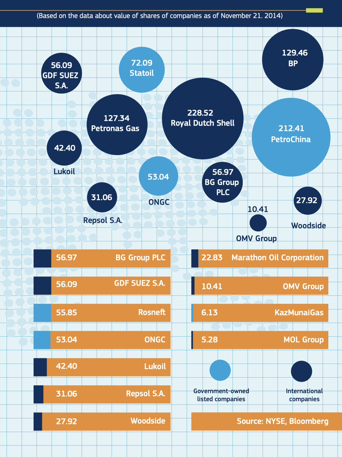 Thus, the USA made the major contribution to the production growth, OPEC thinks. UAE Energy Minister Al-Mazroui said: “The market experiences abundant supplies, which, however, do not come from OPEC”. Against the background of low 6 percent growth rates of the Asian economies (mainly China vs. 10% in 2008) the market is oversaturated. Nobody wants to reduce production and lose its share in the market. As a result, the price will fall down. Nobody knows where the bottom is, it is all about the margin of strength. If Middle Eastern producers enjoy quite high figures, energy budgets of such large producers as Russia, Iran and Venezuela and to a less degree Kazakhstan and Azerbaijan, which are reducing dependence of their economies on oil from year to year, will suffer most of all. If such situation lasts for a longer period, majors will have to suspend their expensive deepwater projects, launch additional refining capacities, and what is even sadder phase down exploration projects, slow down the pace of exploratory drilling, followed by a new circle of mergers and acquisitions, which already happened in the end of the last century. The latter one threatens to boomerang and bring deficit of supply and a subsequent circle of high prices. Most likely it will not happen because nowadays oil companies are technologically sustainable as never before, which is also proved by their growing market capitalization in comparison with the last year (see the Rating for Capitalization of Oil and Gas Companies page…). The crisis is also going to affect development of heavy oil, Canada’s oil sands, while US shale gas developers will have to continue improving their production technologies and shift to automated mini mobile drilling rigs. Prices and OPEC’s future activities, which serve as guidelines for oil traders most of all, will show who is going to win: technologies or emerged traditionalism. One should not ignore the latest news about the condition of the world’s largest economies. It is difficult to say what a price could be. However, if to summarize the outlooks, we can suggest perhaps a comparatively small (compared with the crises of 1999-2000, 2008) circle of falling that will end a stable period with small volatility of prices by March 2015.