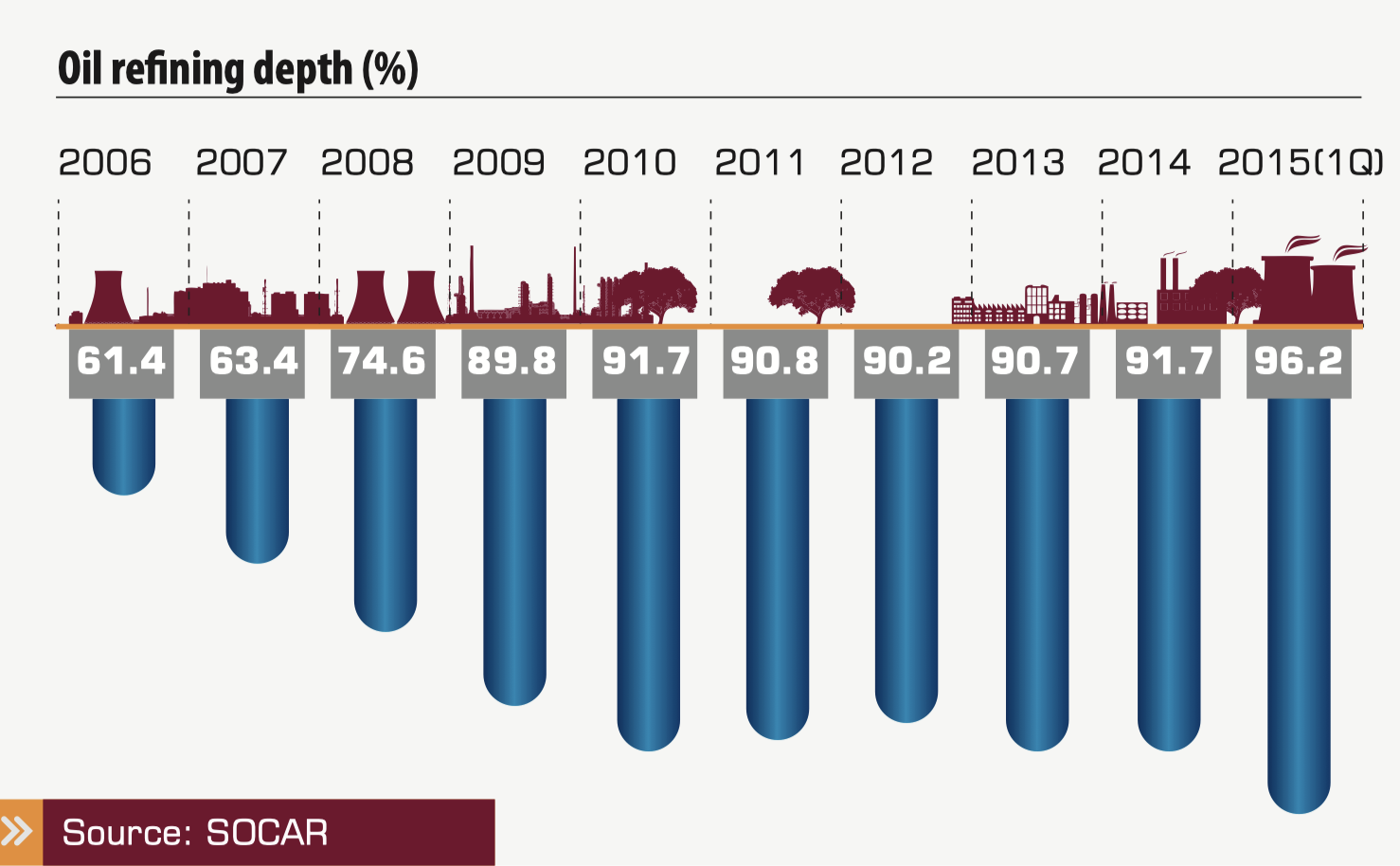 A delayed coking unit was launched at OR in 1986. Later, the catalytic cracking unit G-43-107M was commissioned in 1993 after Heydar Aliyev’s return to power.