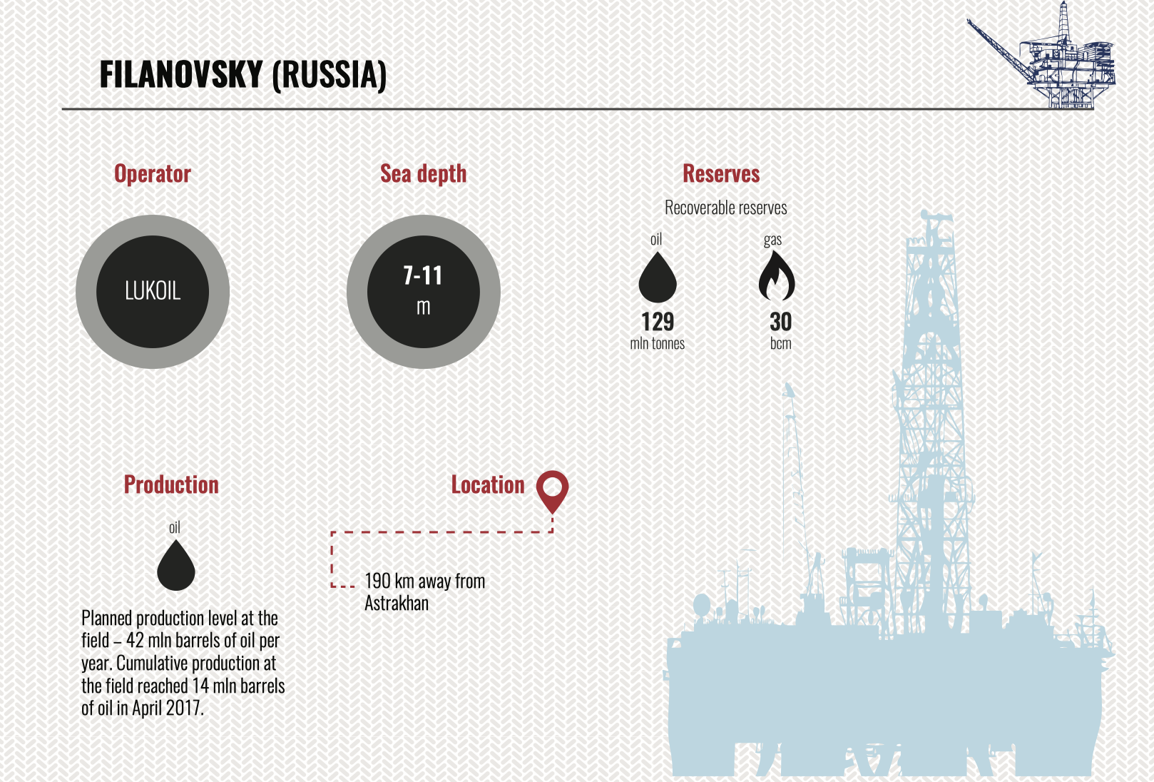 As it is known, old fields of the Azeri sector or the mature production fields are of great value in the fuel-energy balance of the country and the data about their reserves is confident. Therefore, the data of reserves of the late 90s is used as a basis and we put it into the rating according to available production data. The rating of old fields is not so relevant today, as their falling production will be gradually replaced by new commissioned fields. However, they are still investment-attractive as modern methods of branched drilling, deep formation stimulation and presence of the pipeline infrastructure can substantially lower rehabilitation expenditures. Besides, the deep-water part of many of the old fields still remains undeveloped because development has so far been carried at low and average depths due to the lack of technologies, which also makes these fields more investment-attractive. As it was mentioned above, today it has been 115 years since the development of the oldest fields in the sea – at Pirallahi Island. There is no precedent for this in the global history of upstream operations. It is a further proof of the high resource potential of the Caspian Sea, which has not been fully studied yet.