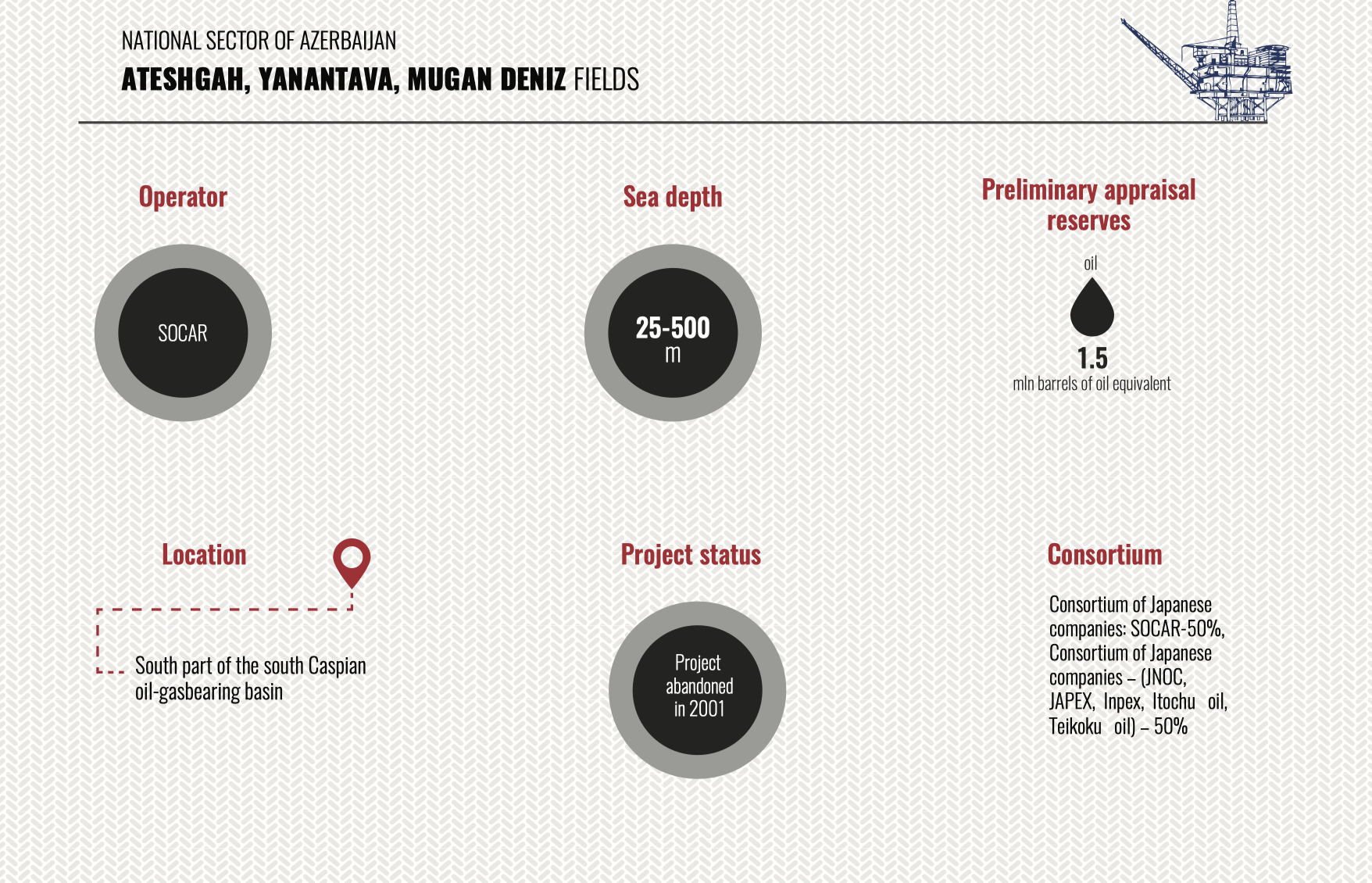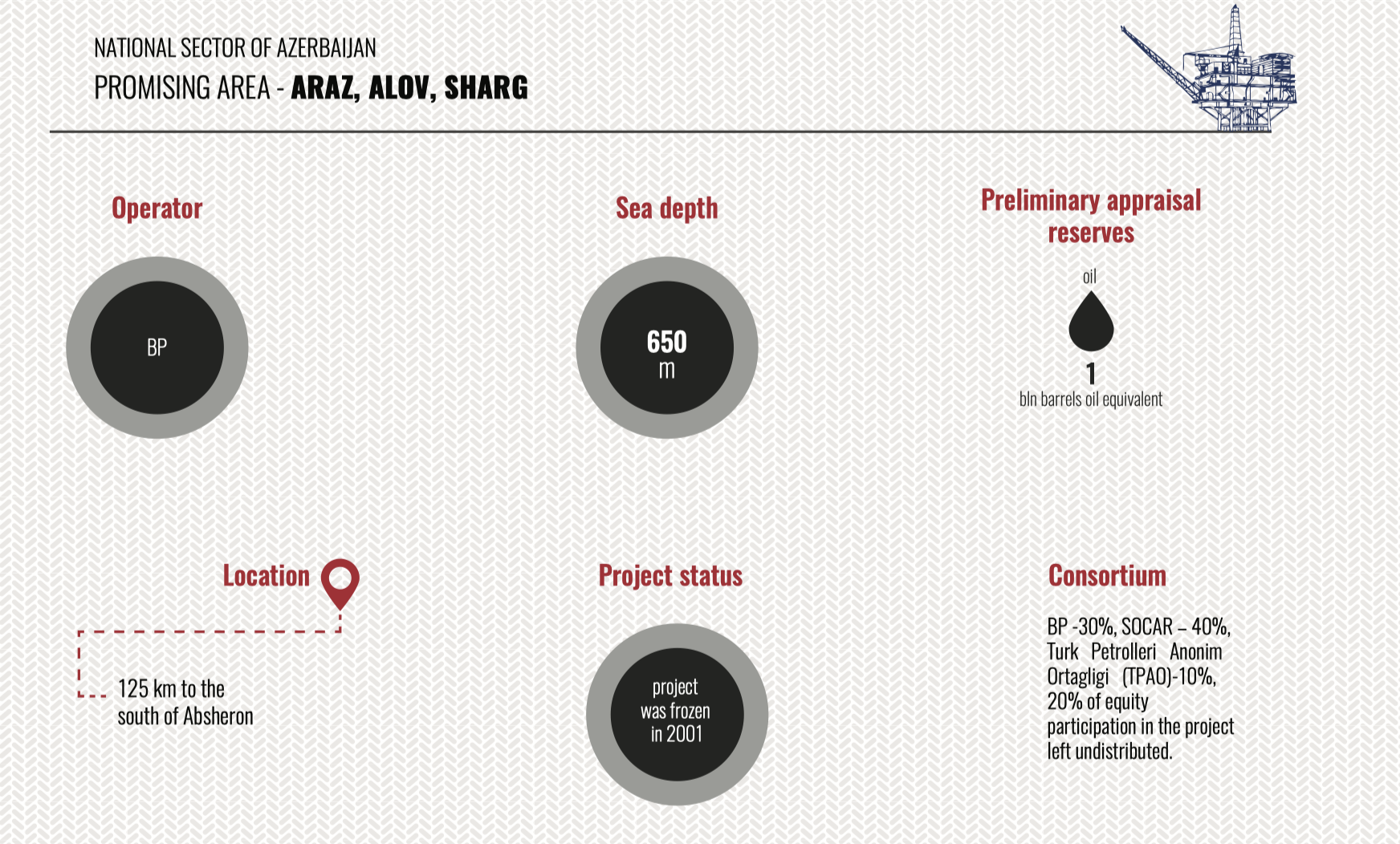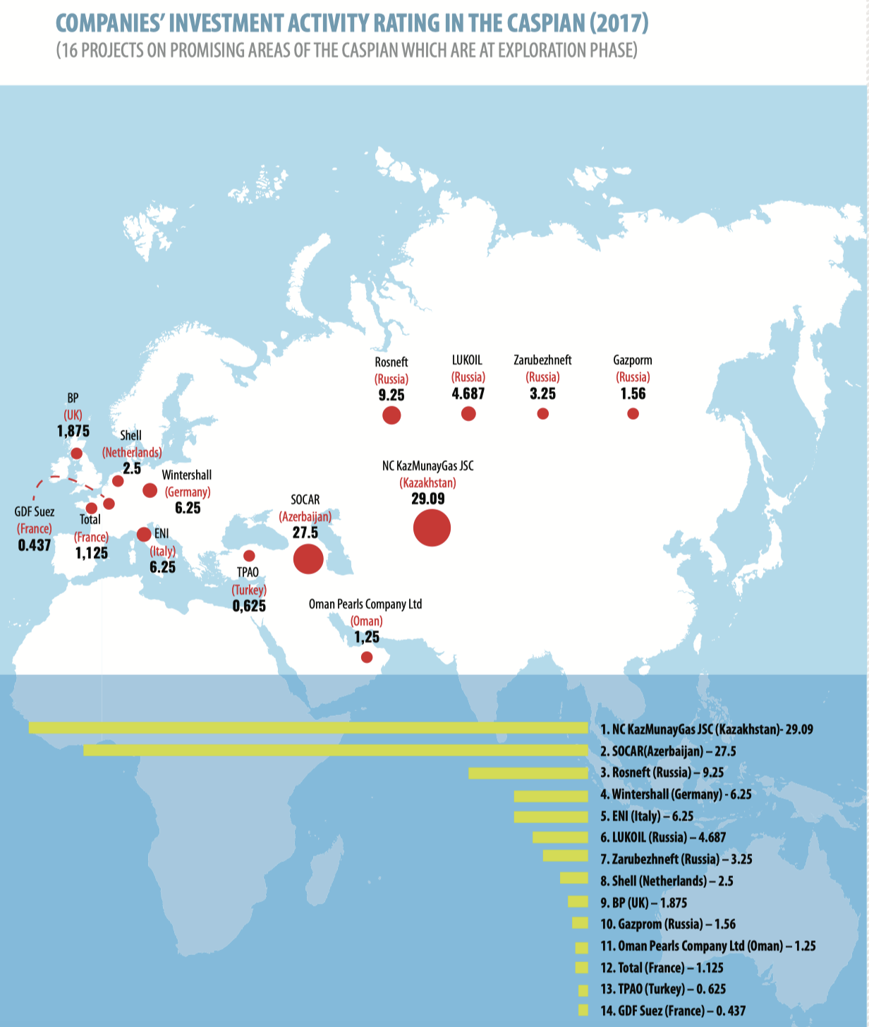While making the rating, new discovered fields and structures, which are included into the state program of production of Caspian states and negotiations with investors, were taken into account. Dan Ulduzu, Ashrafi, Karabakh, Zafar, Mashal and Nakhchivan are related to such fields in the Azeri sector. In Kazakhstan sector it is N-Nursultan and Zhemchujina areas, in Turkmen sector it is Block 11-12 and Block 21.