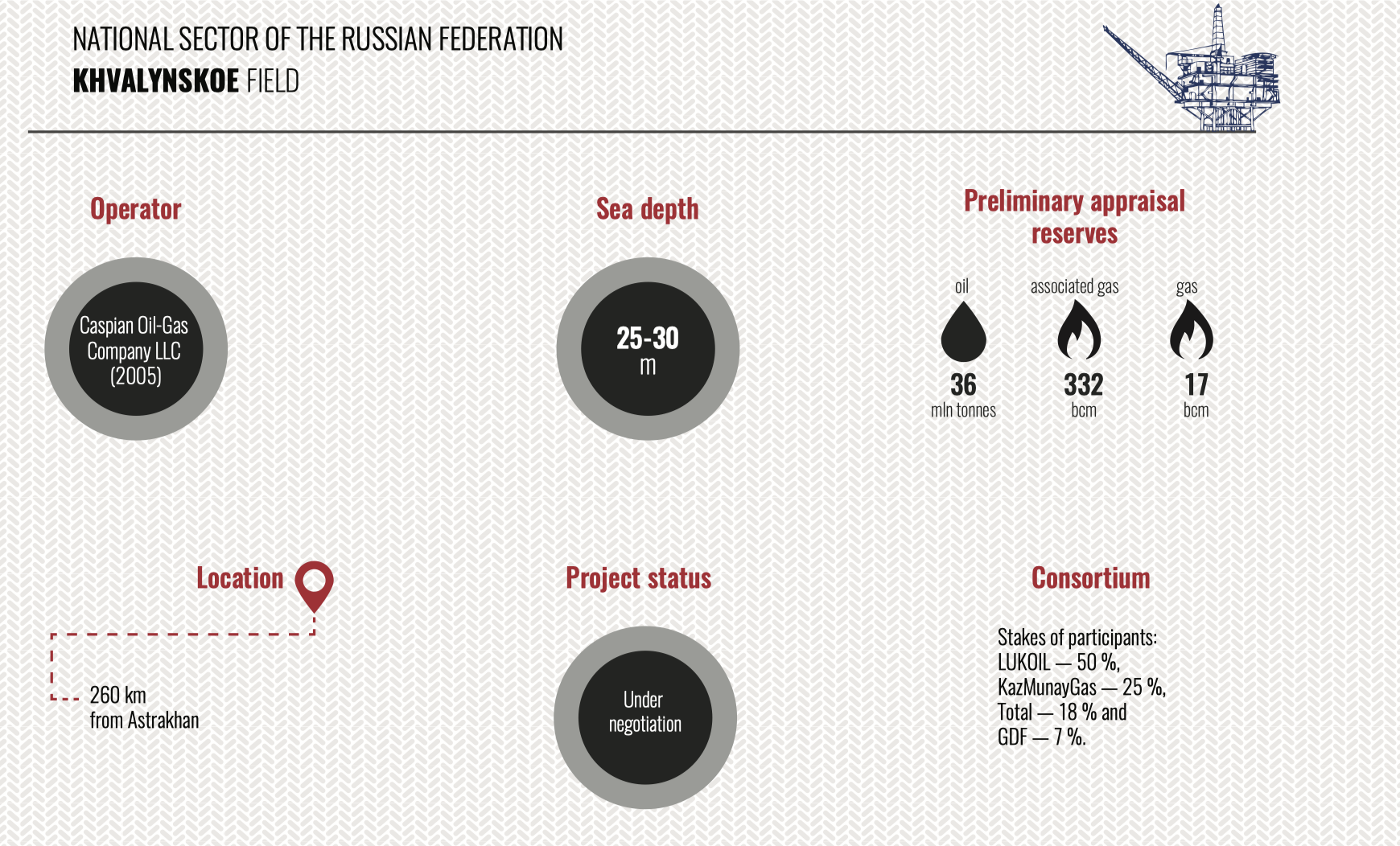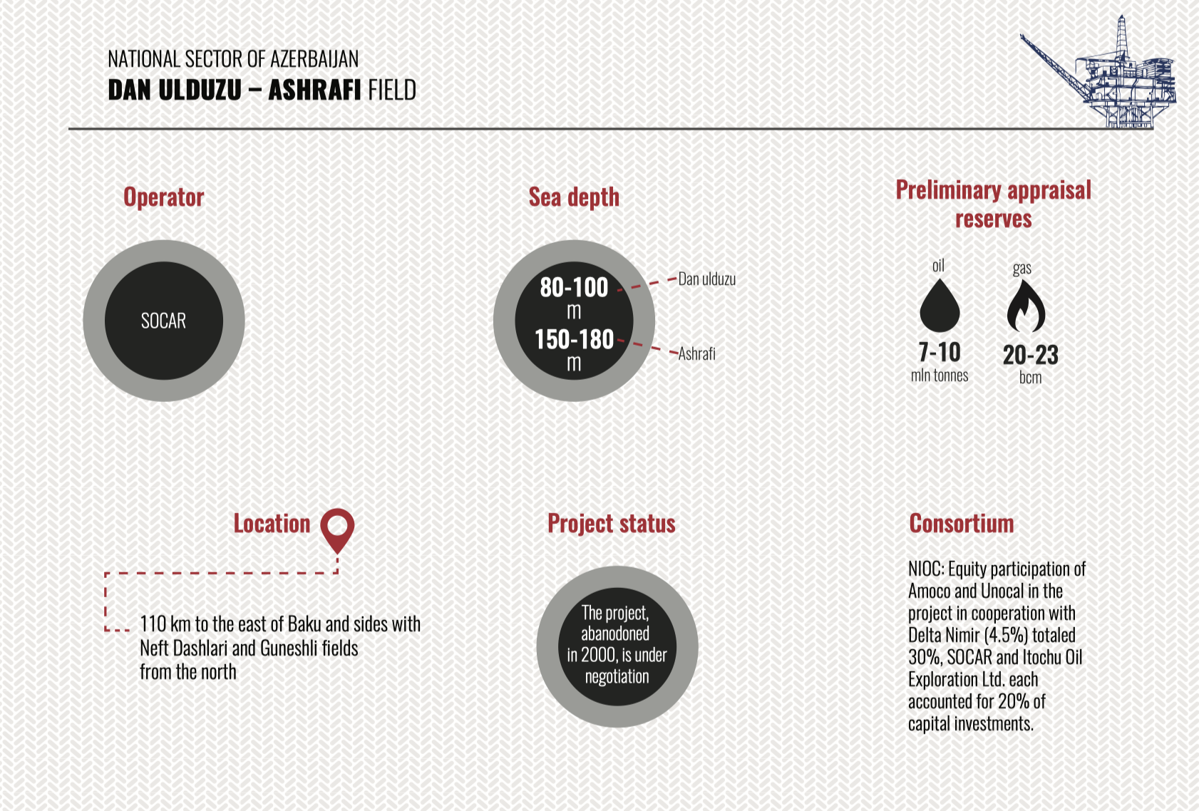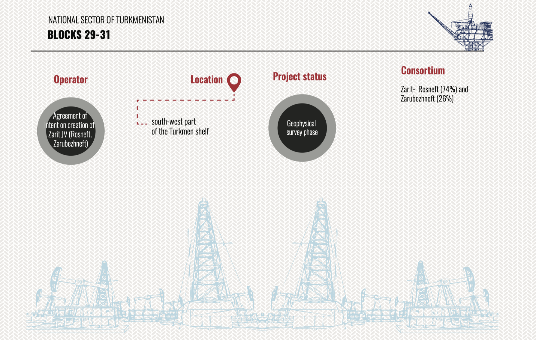 While making the rating, new discovered fields and structures, which are included into the state program of production of Caspian states and negotiations with investors, were taken into account. Dan Ulduzu, Ashrafi, Karabakh, Zafar, Mashal and Nakhchivan are related to such fields in the Azeri sector. In Kazakhstan sector it is N-Nursultan and Zhemchujina areas, in Turkmen sector it is Block 11-12 and Block 21.