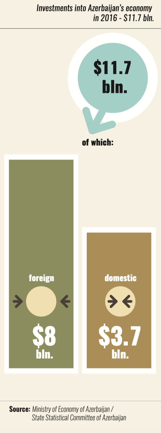 The government believes that yes, it will do and even export investments to Turkey, Georgia, Ukraine, Romania, Moldova and other countries. Public and private companies of Azerbaijan are actively involved in projects in the fields of petrochemicals, logistics, infrastructure in foreign countries, the Economy Ministry said.