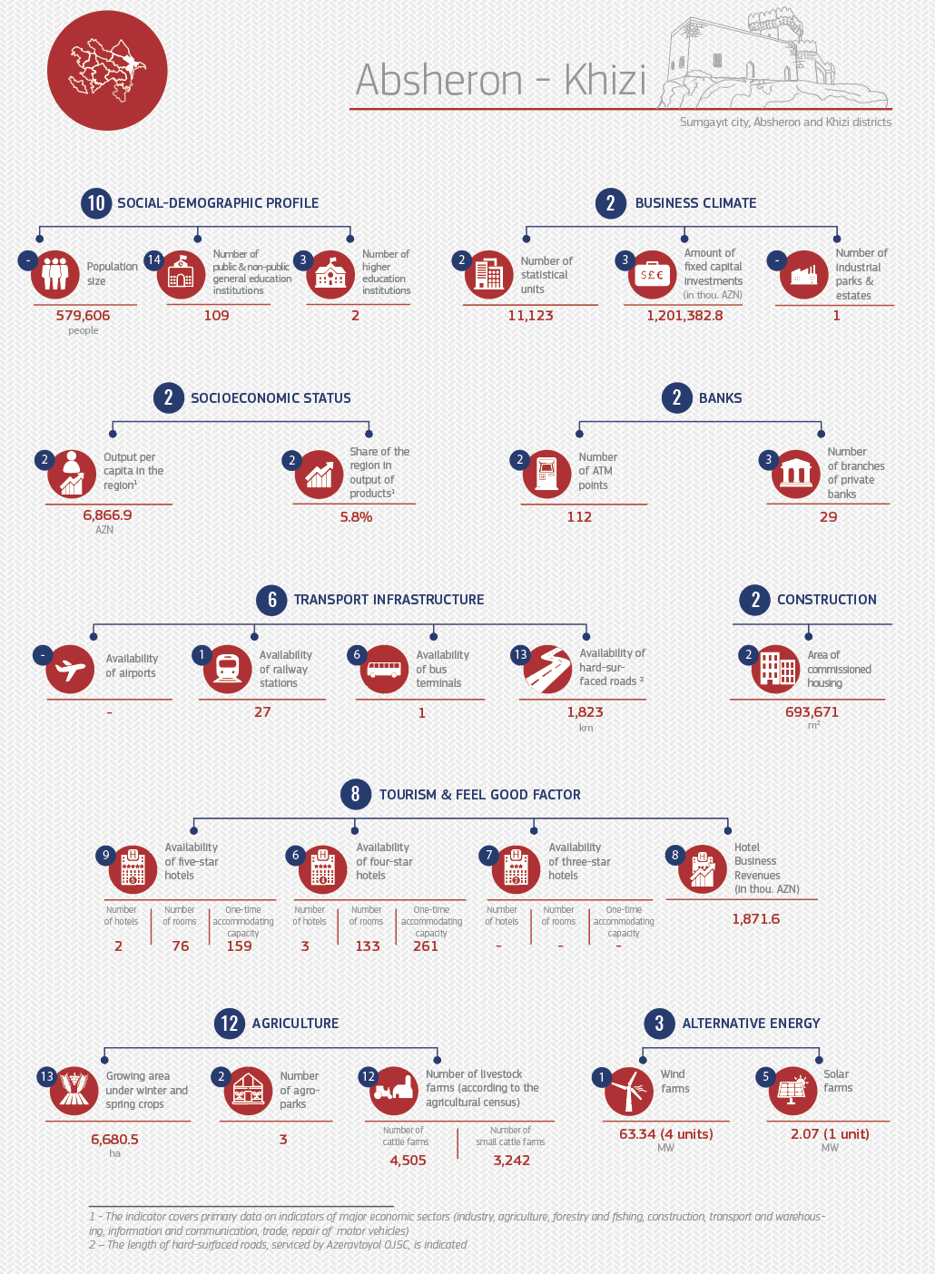 Absheron-Khizi is the 8th – 1,817.6 thou. AZN. Central Aran is the 9th with 1,332.4 thou. AZN, followed by Garabagh (931.0 thou. AZN), Gazakh-Tovuz (807.8 thou. AZN).