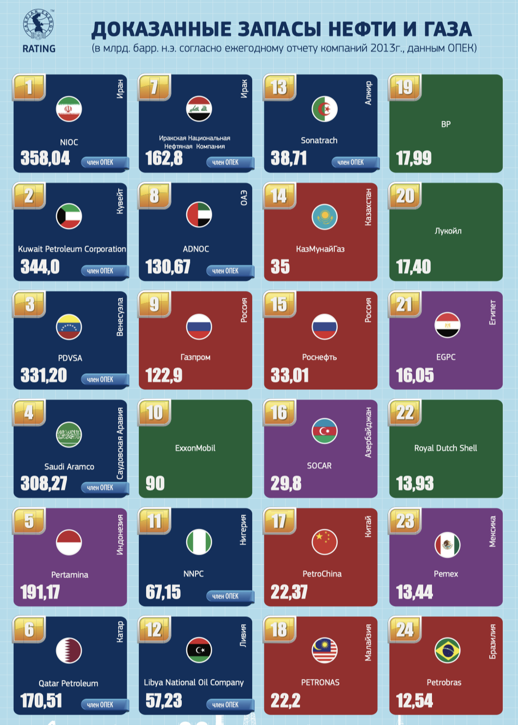 При этом на последнем заседании ОПЕК был оставлен неизменным с 2012 года уровень добычи 30 млн барр./сут. Но, как сообщают западные СМИ, и этот лимит превышает установленный уже пятый месяц, и в октябре члены ОПЕК добывали 30,97 млн барр. нефти в день, что составляет примерно треть мировой нефтедобычи. Добыча нефти в Соединенных Штатах в 2014 г. увеличилась до 8,2 млн баррелей в день против 5 млн баррелей в 2010 г.