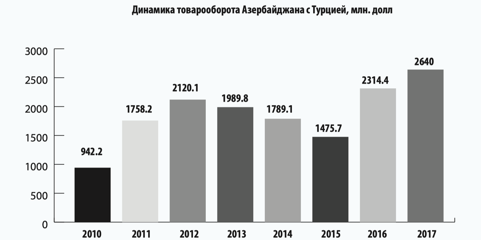 В росте этого показателя, несомненно, сыграло важную роль то, что в октябре 2017 года Турция освободила от пошлин товары, поставляемые из Нахчыванской Автономной Республики (НАР) Азербайджана. В список были включены 43 наименования продукции (13 сельскохозяйственных, 30 промышленных товаров), что стало важным шагом на пути подписания межправительственного азербайджано-турецкого соглашения о преференциальной торговле.