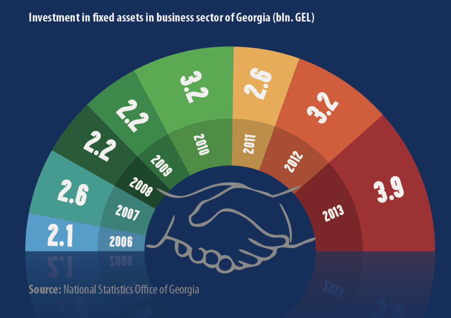 The volume of direct foreign investments made in Georgia in 2012, 2011, 2010, 2009, 2008, 2007 and 2006 totaled $912 mln, $1.117bln, $553.1 mln, $658.4 mln, $1.5 bln, $2.01 bln and $1.2 bln respectively.