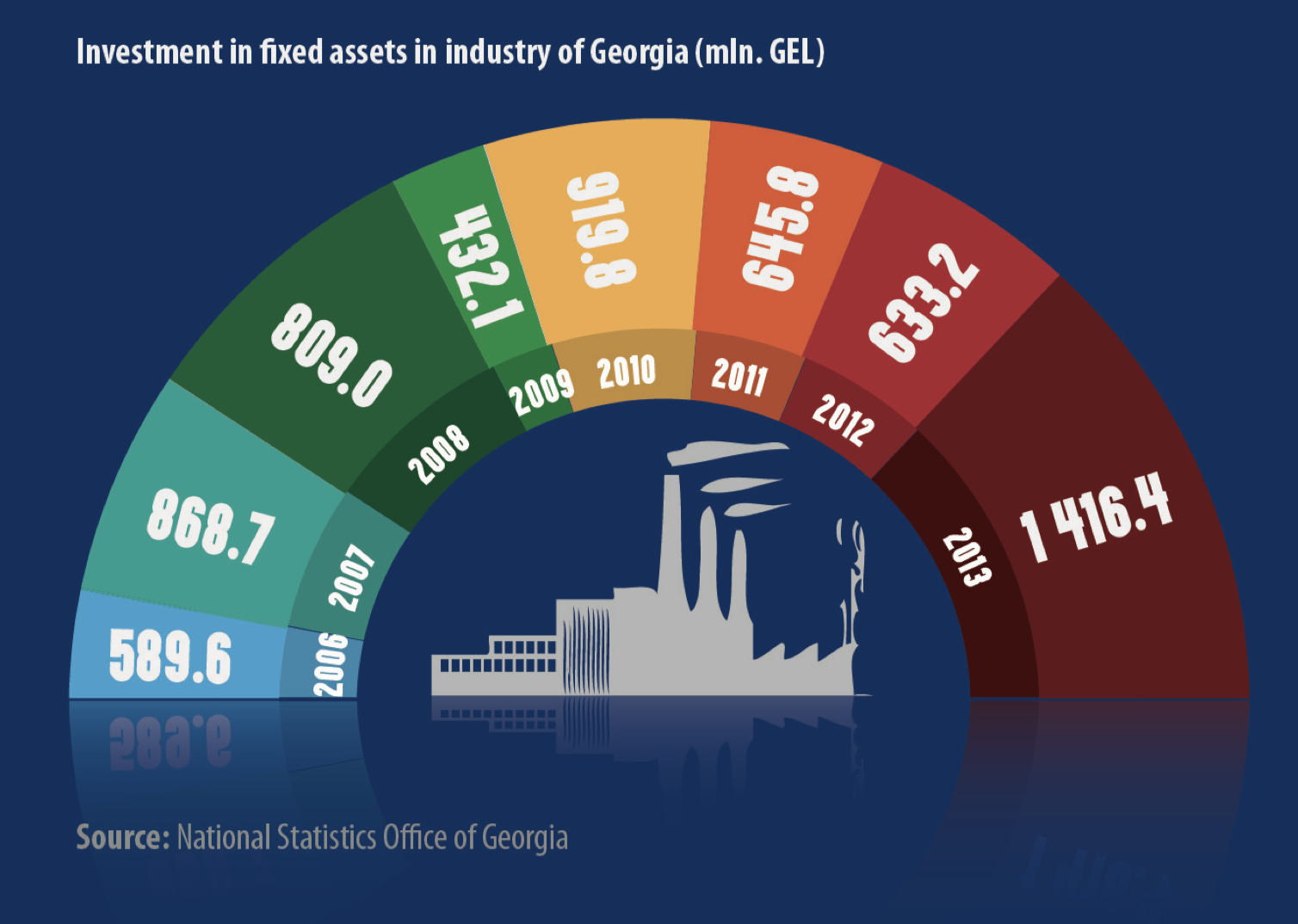 For the first half of the year 2014 investments into the refining industry of Georgia made $104 million, which is 136% up vs. the similar indicator of 2013 ($44 million).