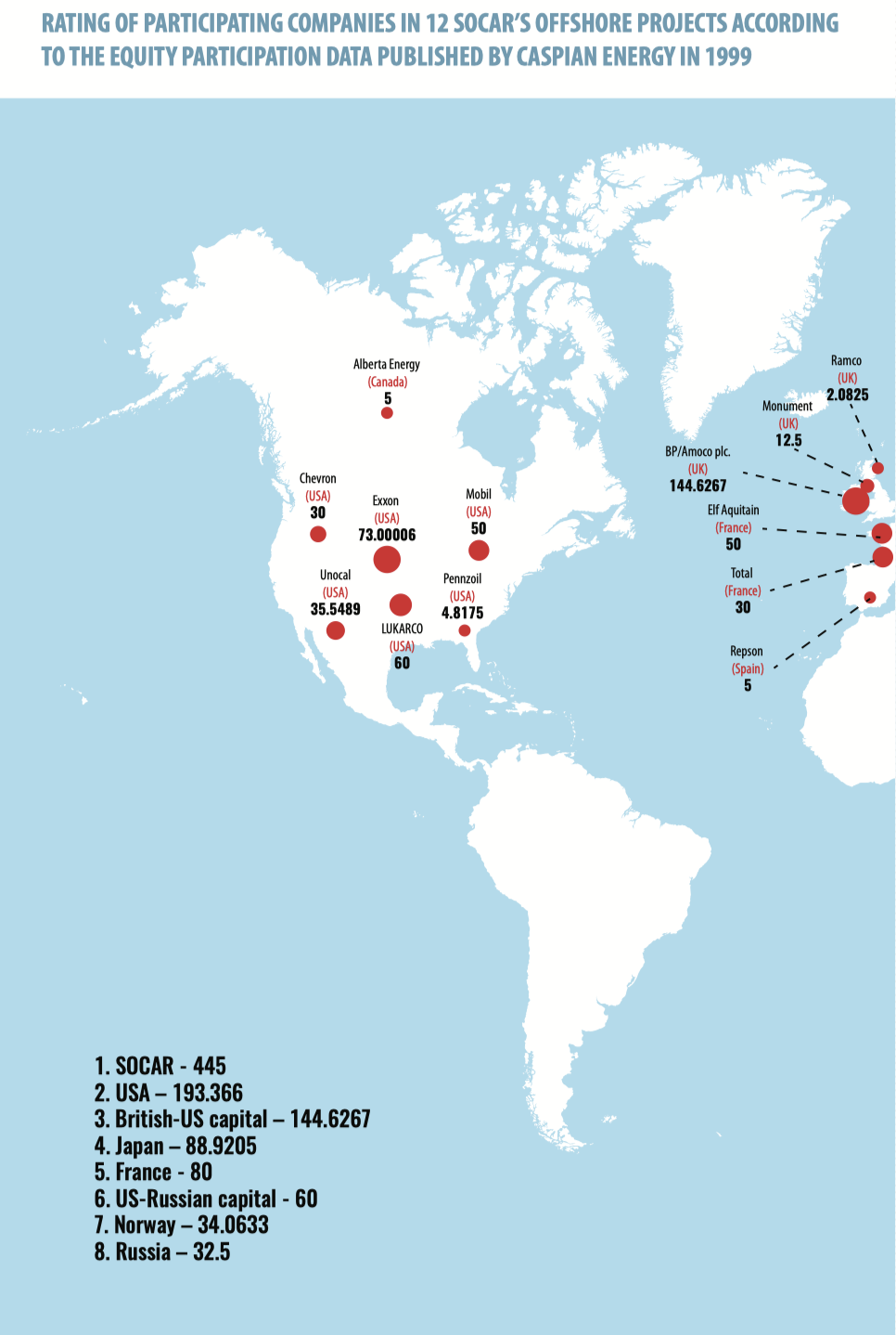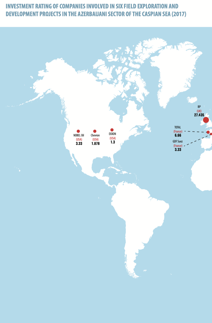 As it is seen from the rating, Azerbaijan National Company SOCAR firmly holds the first position in the investment activity rating both within its national sector of the Caspian Sea and across the entire Caspian space. It points to the importance of the Caspian fields for the economy of Azerbaijan, as well as to high geological certainty compared to sectors of other Caspian countries and the interest that foreign investors keep showing in upstream projects.