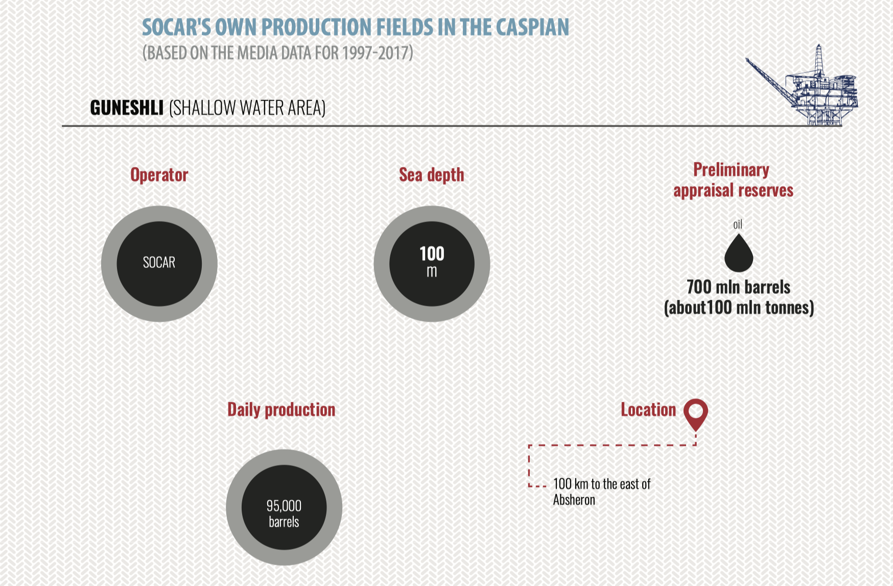 As it is known, old fields of the Azeri sector or the mature production fields are of great value in the fuel-energy balance of the country and the data about their reserves is confident. Therefore, the data of reserves of the late 90s is used as a basis and we put it into the rating according to available production data. The rating of old fields is not so relevant today, as their falling production will be gradually replaced by new commissioned fields. However, they are still investment-attractive as modern methods of branched drilling, deep formation stimulation and presence of the pipeline infrastructure can substantially lower rehabilitation expenditures. Besides, the deep-water part of many of the old fields still remains undeveloped because development has so far been carried at low and average depths due to the lack of technologies, which also makes these fields more investment-attractive. As it was mentioned above, today it has been 115 years since the development of the oldest fields in the sea – at Pirallahi Island. There is no precedent for this in the global history of upstream operations. It is a further proof of the high resource potential of the Caspian Sea, which has not been fully studied yet.