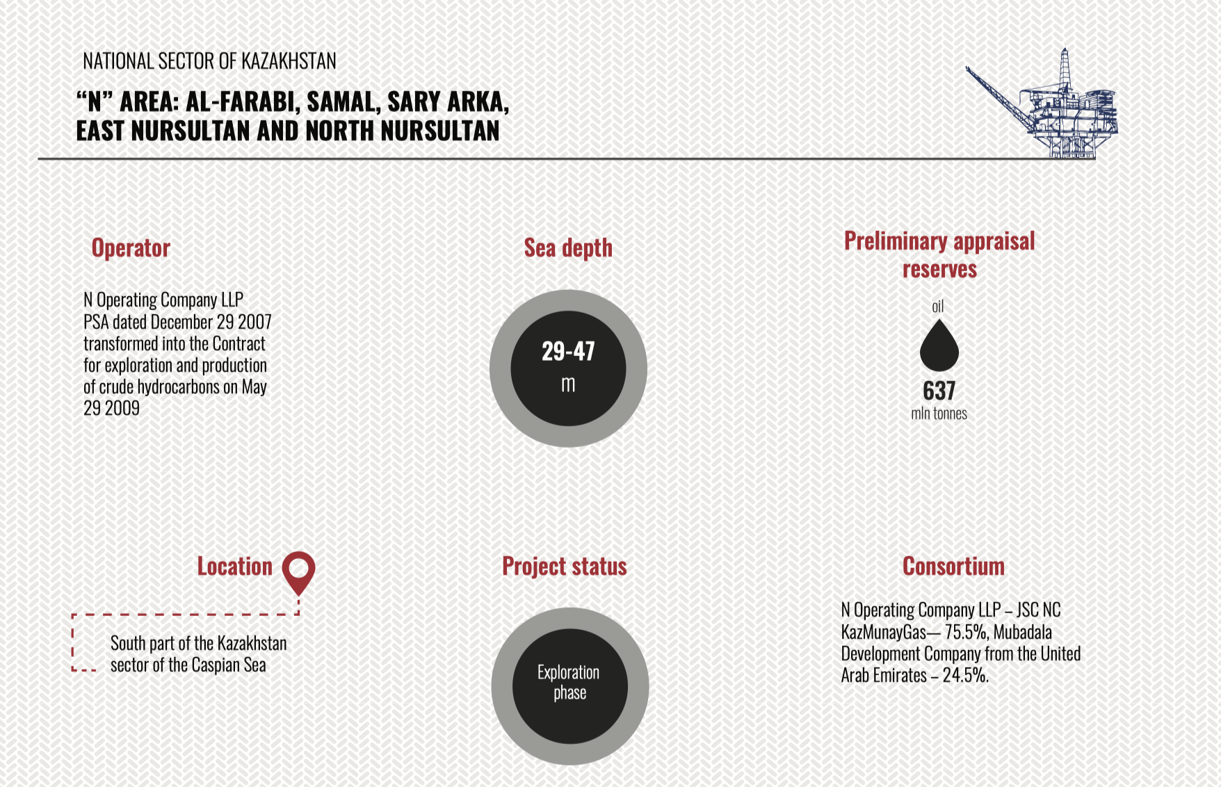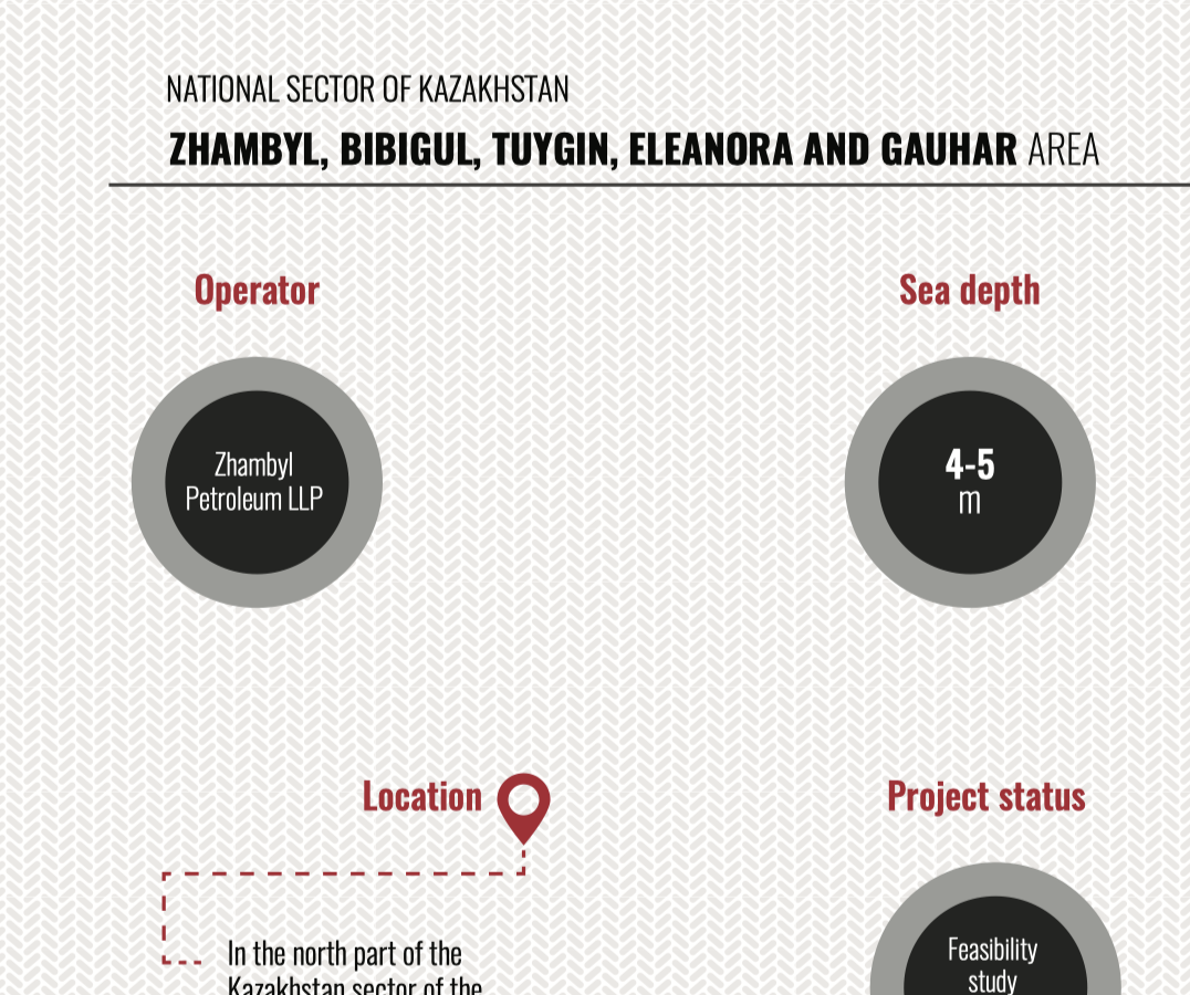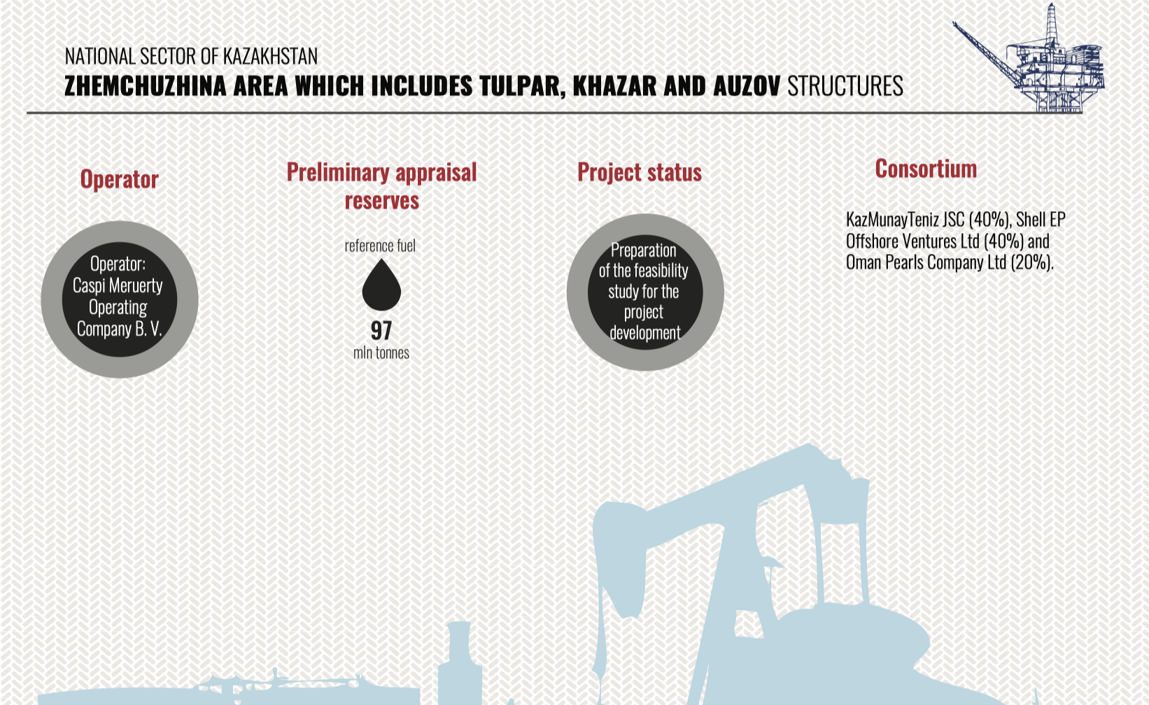 While making the rating, new discovered fields and structures, which are included into the state program of production of Caspian states and negotiations with investors, were taken into account. Dan Ulduzu, Ashrafi, Karabakh, Zafar, Mashal and Nakhchivan are related to such fields in the Azeri sector. In Kazakhstan sector it is N-Nursultan and Zhemchujina areas, in Turkmen sector it is Block 11-12 and Block 21.