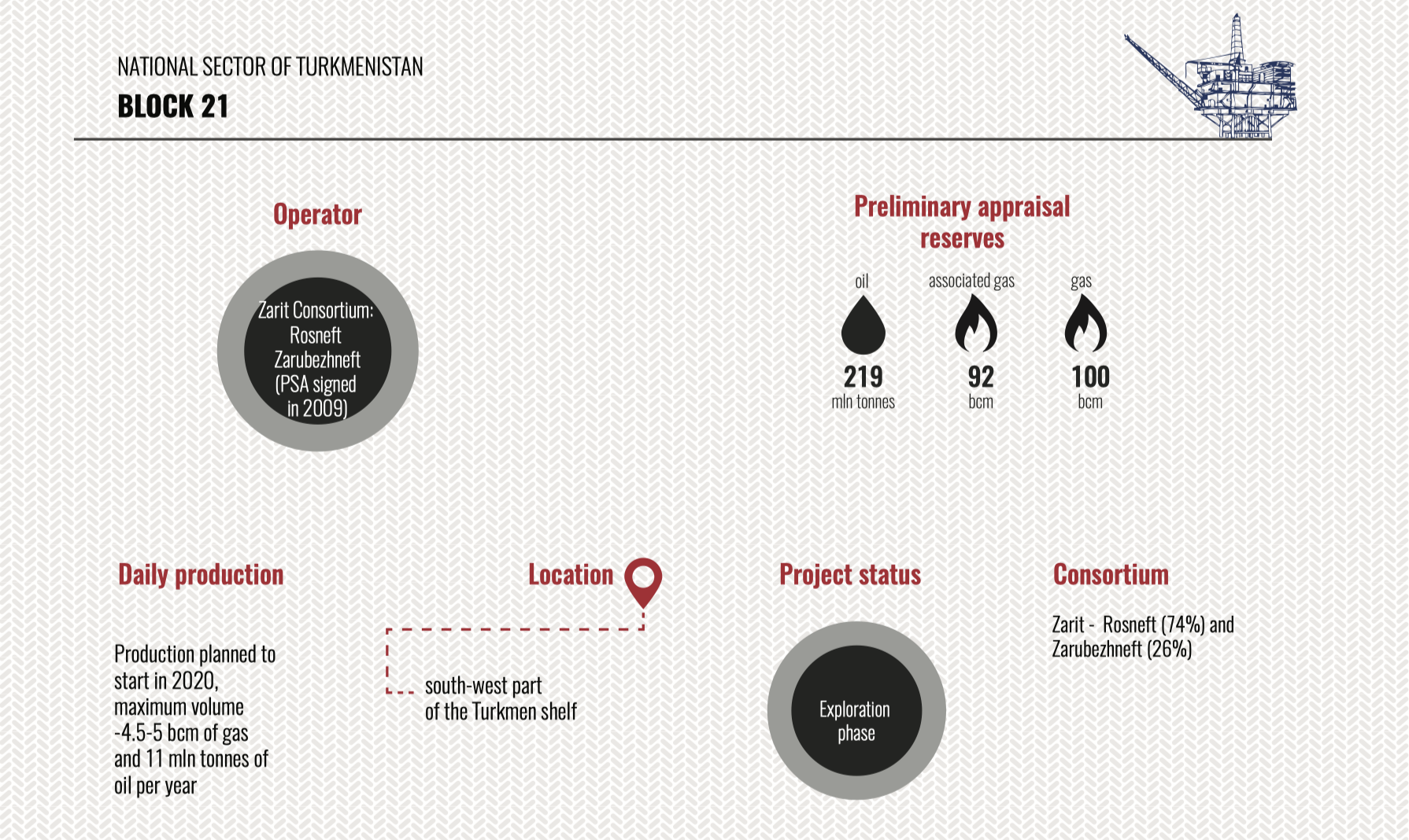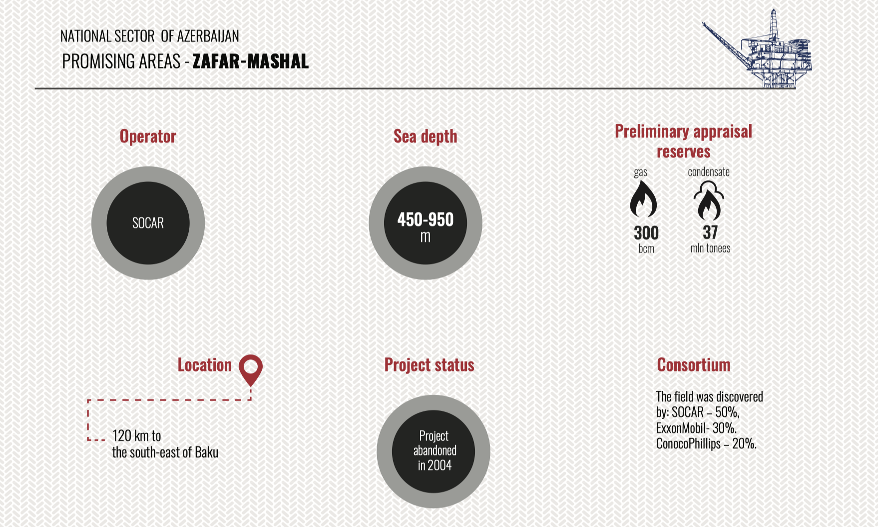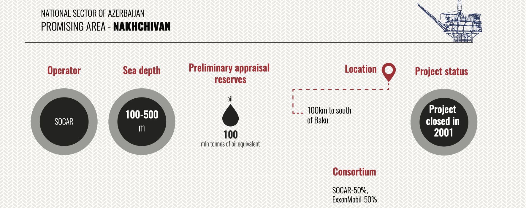 While making the rating, new discovered fields and structures, which are included into the state program of production of Caspian states and negotiations with investors, were taken into account. Dan Ulduzu, Ashrafi, Karabakh, Zafar, Mashal and Nakhchivan are related to such fields in the Azeri sector. In Kazakhstan sector it is N-Nursultan and Zhemchujina areas, in Turkmen sector it is Block 11-12 and Block 21.