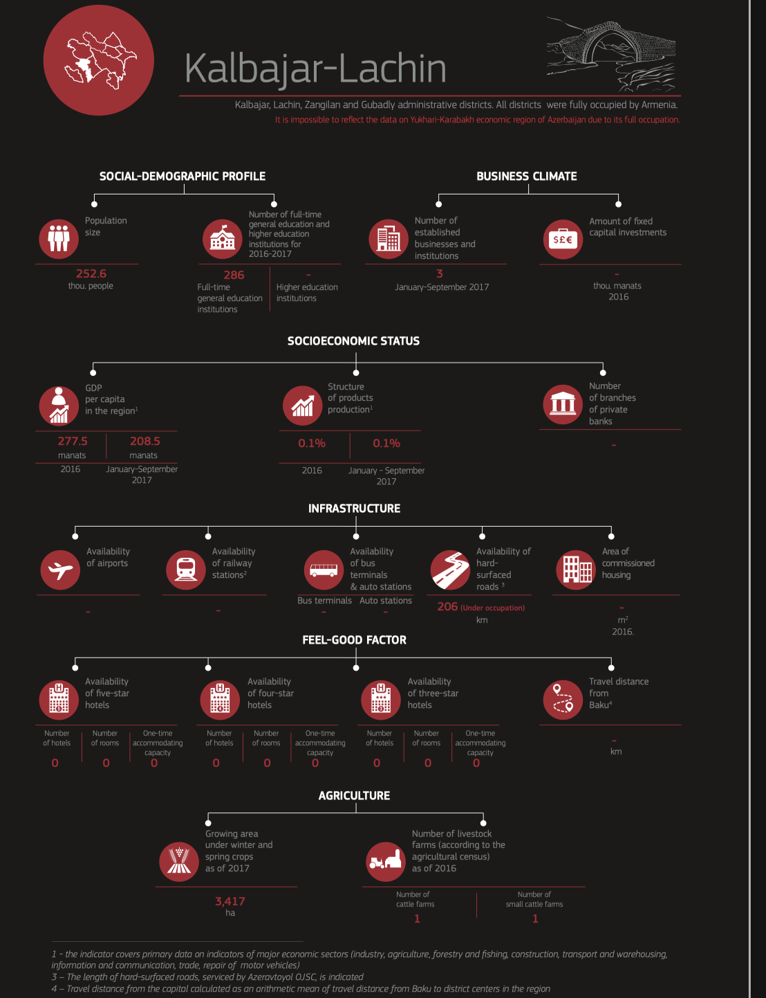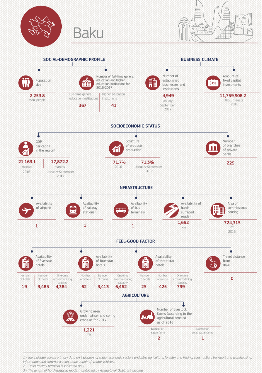 The distinctive feature of this rating is that we have put Baku into the rating, following the requests of the readers. Baku’s indicators serve as a relative benchmark and an indicator of development of the Azerbaijan regions. However, Baku did not join the final rating due to its dominant position.