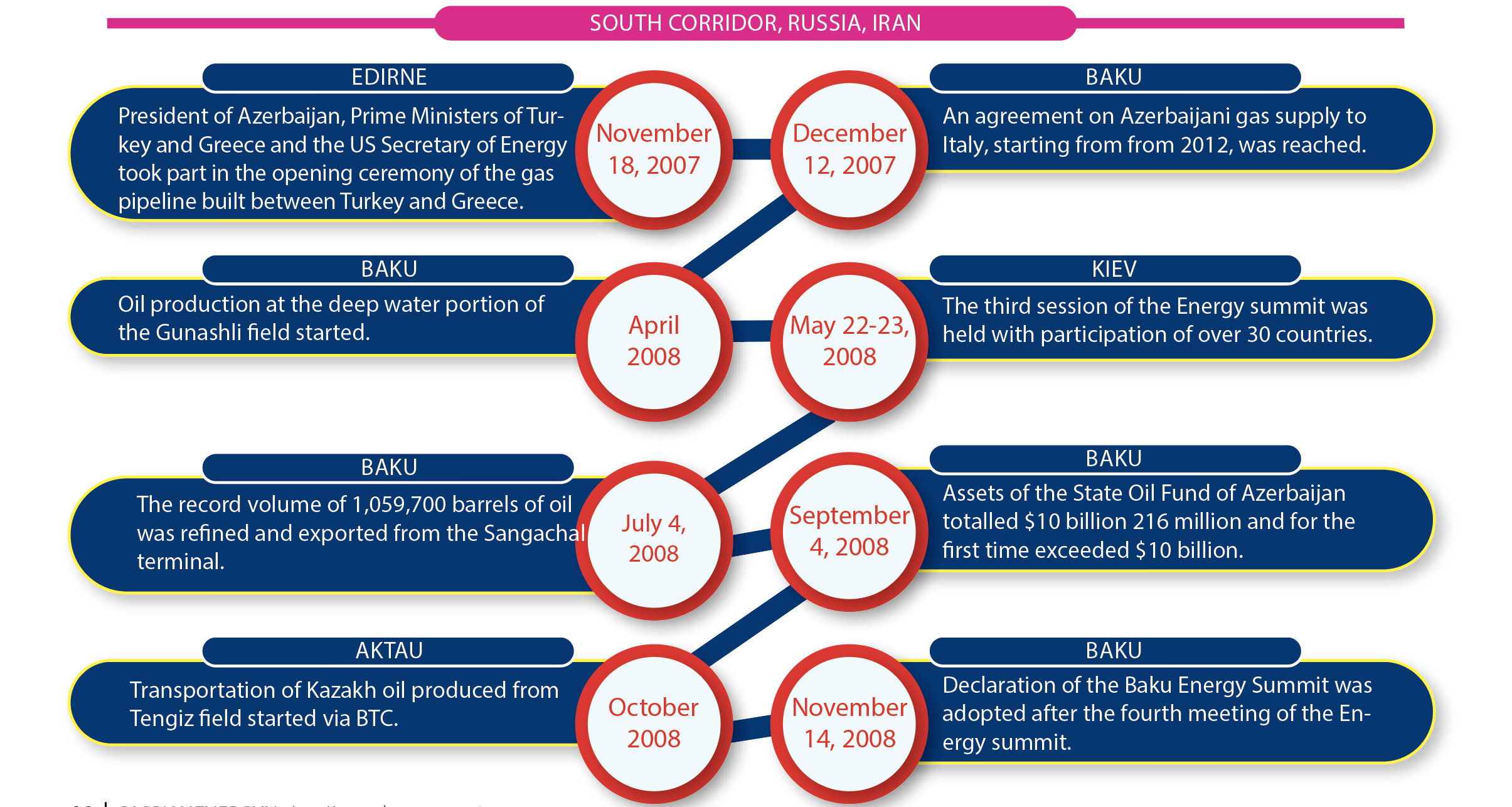 - The Southern Gas Corridor Advisory Council meeting is annually hosted in Baku at our initiative. The 5th meeting took place in February of this year. We certainly have no doubts that we will ensure successful implementation of this giant project as there are no problems left today, both in terms of the international cooperation and in terms of financial resources, in order to get this project done.
