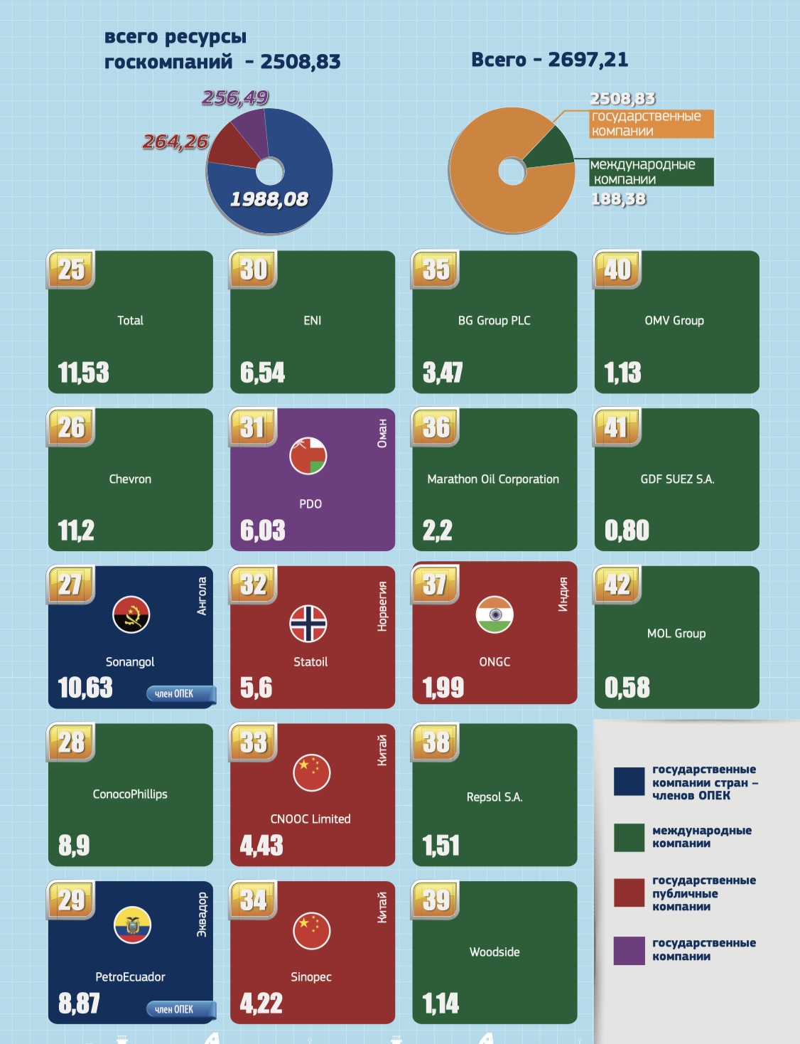 При этом на последнем заседании ОПЕК был оставлен неизменным с 2012 года уровень добычи 30 млн барр./сут. Но, как сообщают западные СМИ, и этот лимит превышает установленный уже пятый месяц, и в октябре члены ОПЕК добывали 30,97 млн барр. нефти в день, что составляет примерно треть мировой нефтедобычи. Добыча нефти в Соединенных Штатах в 2014 г. увеличилась до 8,2 млн баррелей в день против 5 млн баррелей в 2010 г.