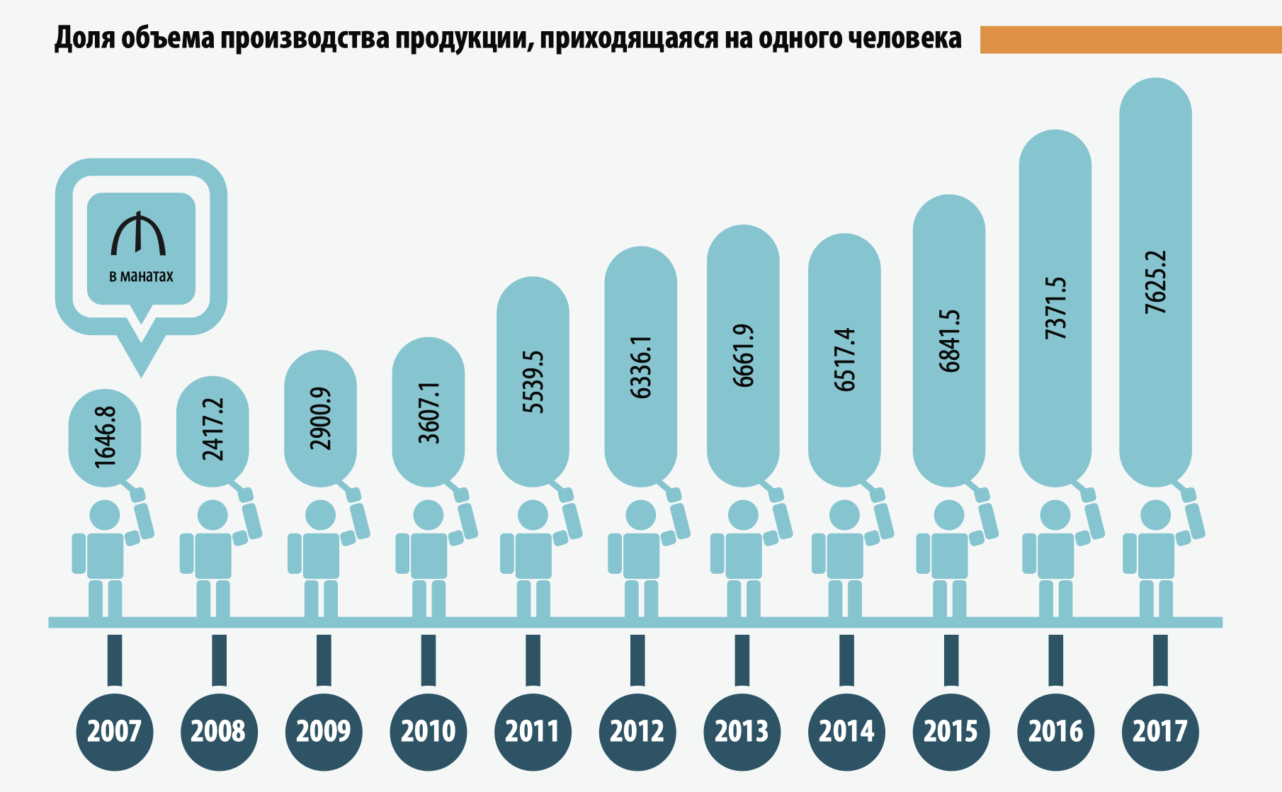 Реформы, проведенные в области промышленности, оказали положительное влияние на рост производства продукции. В 2017-ом году был зарегистрирован объем производства промышленной продукции, превышающий 967 миллионов манатов. За последние 10 лет доля негосударственного сектора в производстве промышленной продукции увеличилась с 69 процентов до 95 процентов.