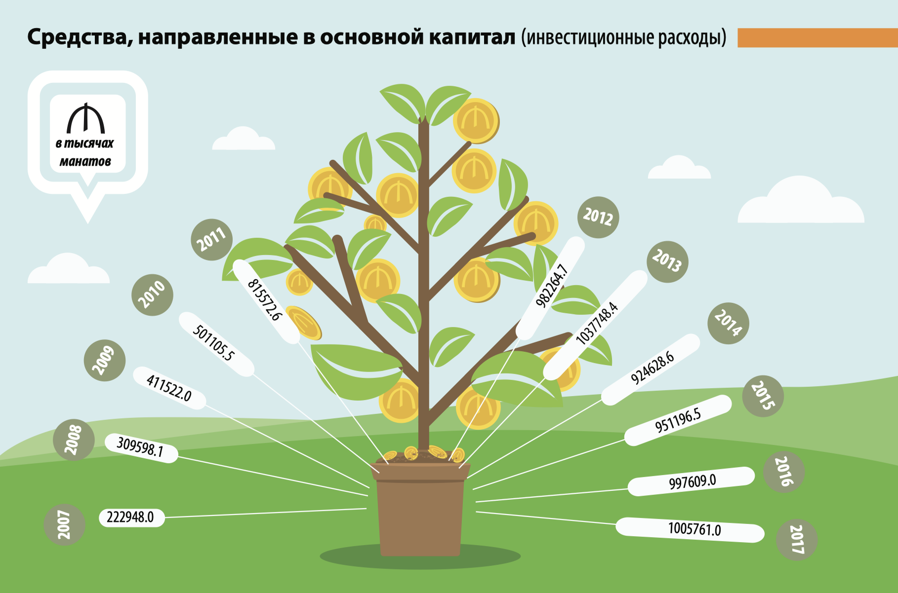В рамках инвестирования средств в 2017 году было обеспечено строительство или реконструкция 236 объектов, в том числе 1 университетского городка, 10 общеобразовательных школ на 3890 учебных мест, 1 детского сада на 224 места, 1 детской музыкальной школы, 10 объектов здравоохранения, 11 жилых зданий, 15 административных зданий, 20 объектов культуры, 1 спортивного объекта, 60 производственных предприятий и объектов услуг, 12 мостов, 2 субартезианских колодцев, 14 кяризов, 79 других инфраструктурных объектов. Продолжается строительство или реконструкция 98 объектов.