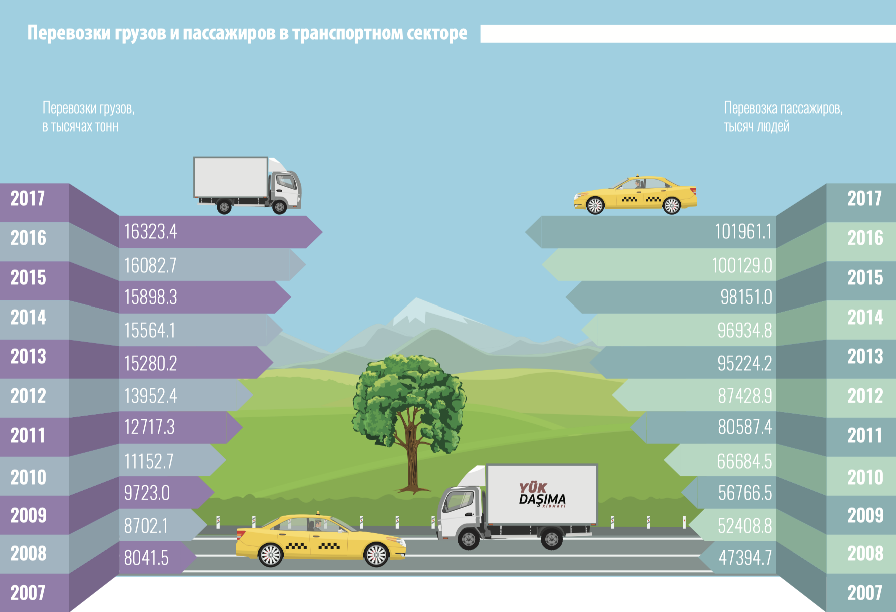 Все предпринятые мероприятия обеспечили динамичный рост перевозок грузов и пассажиров, являющихся основными показателями транспортного сектора.