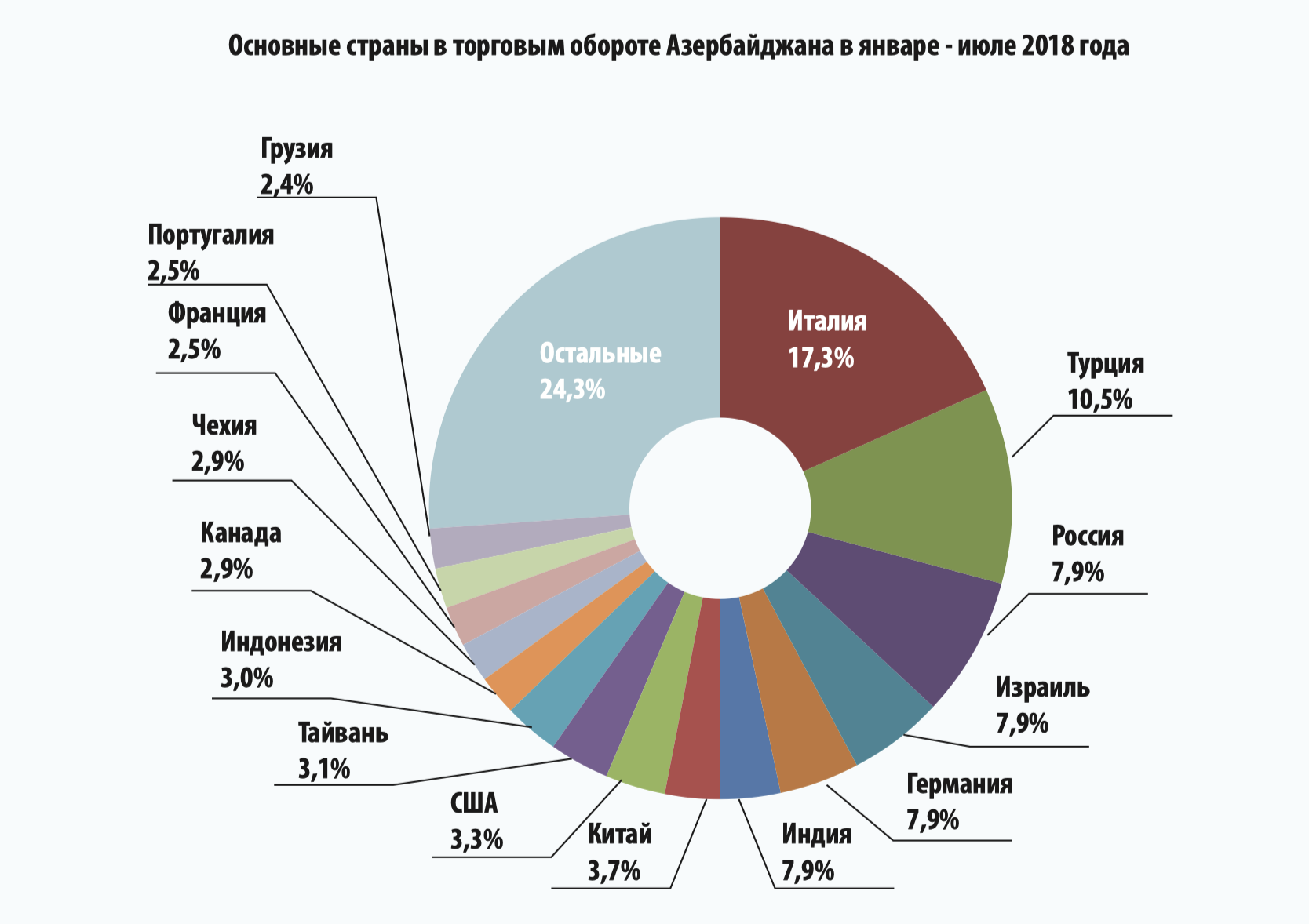 Лишь за последний год, товарооборот Азербайджана со странами мира вырос на 57 процентов, достигнув по итогам июля 2018 года 16524,5 млн долларов США.